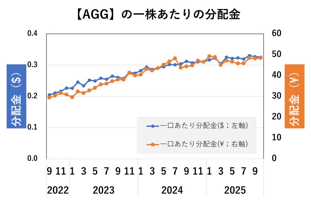 【AGG】の分配金と為替
