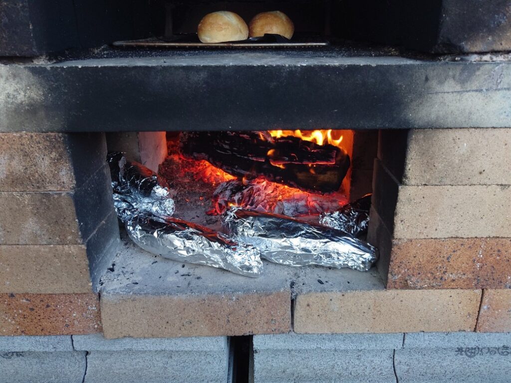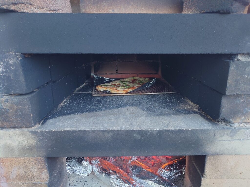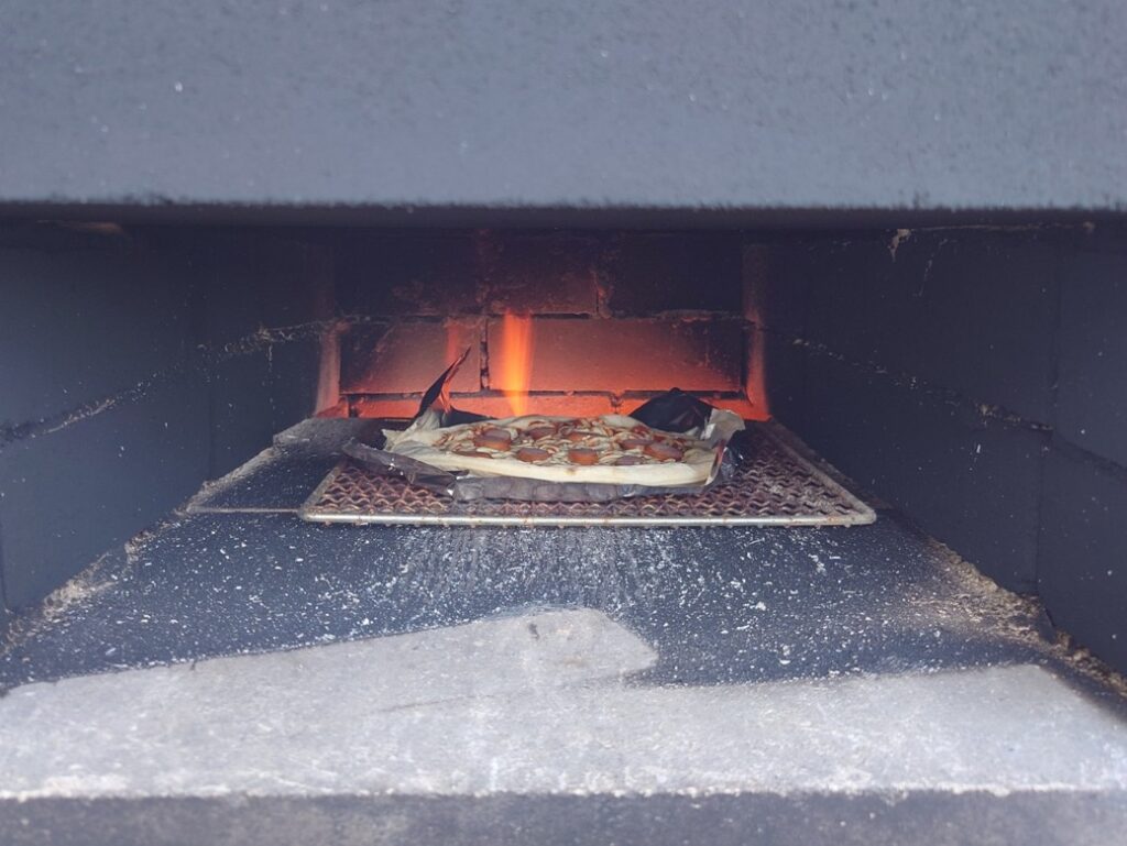 また、ピザ窯の構造上の都合で、上段をふさいで煙突効果をうまく利用しています(たぶん)。