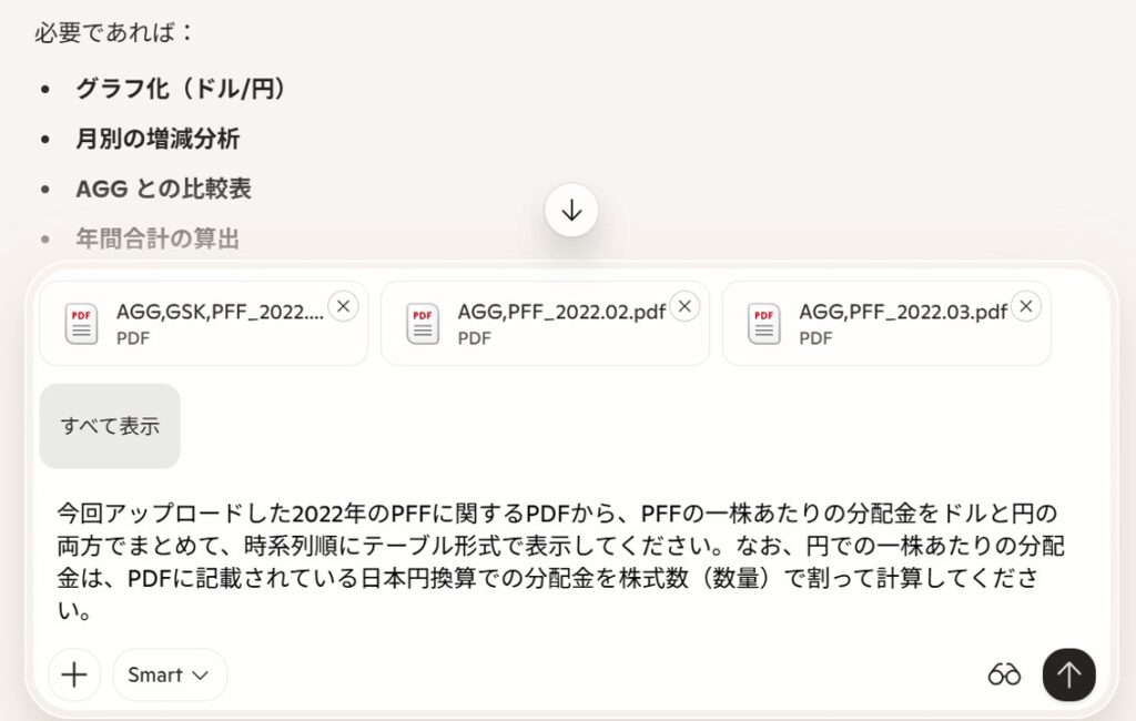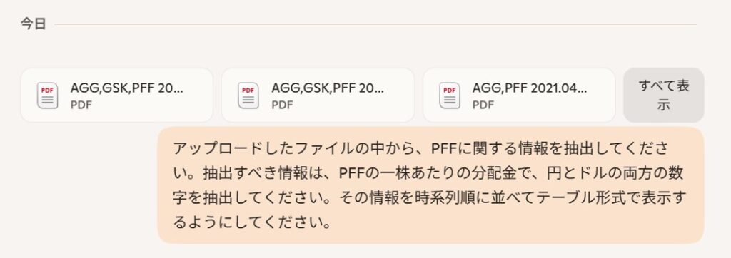 何かを考えさせるのはひとまずおいといて、手元のPDFから必要な情報を抽出してまとめてもらうことにしました。