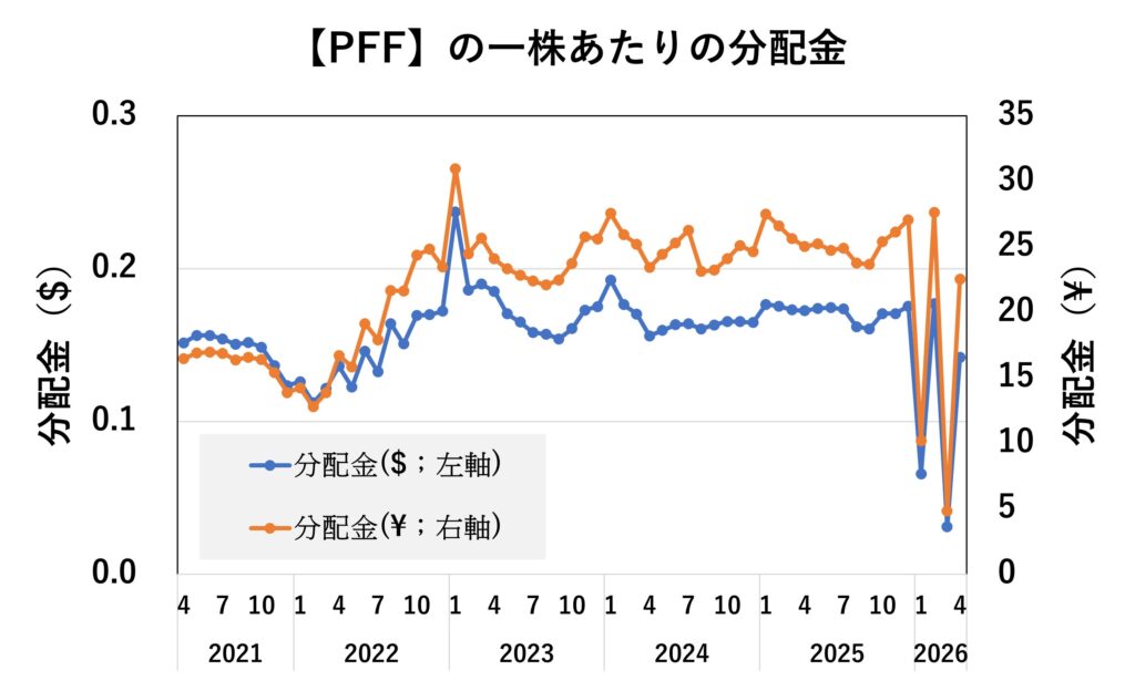 PFFの一株あたりの分配金の推移
